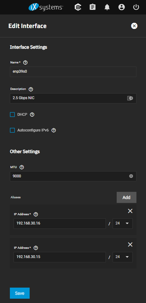I’m going to need two IP addresses tied to the NIC because I’ll need two services on port 443. One for the TrueNas Scale interface, and one for the Nextcloud app.