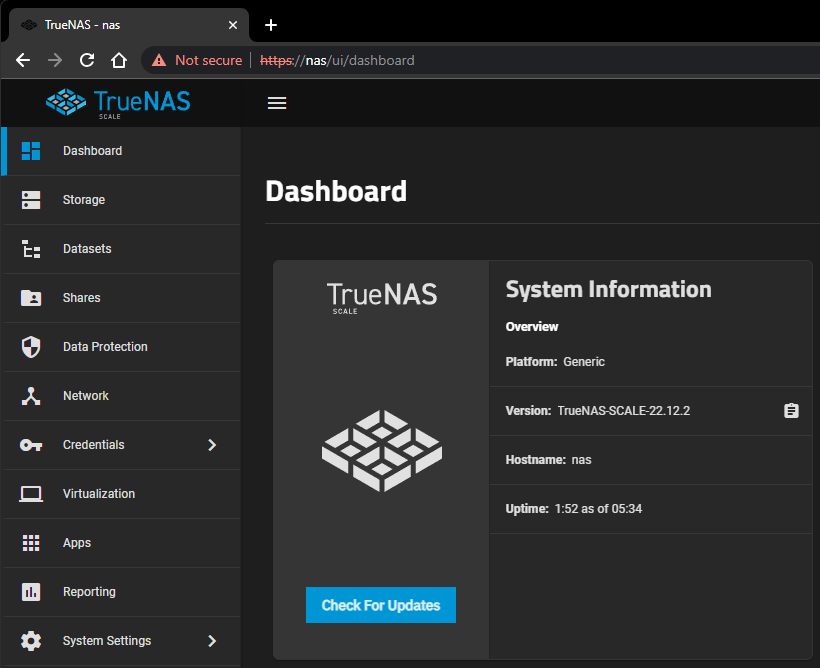 I’ll take care of the valid certificate later. I just want you to see the URL is indeed https://nas